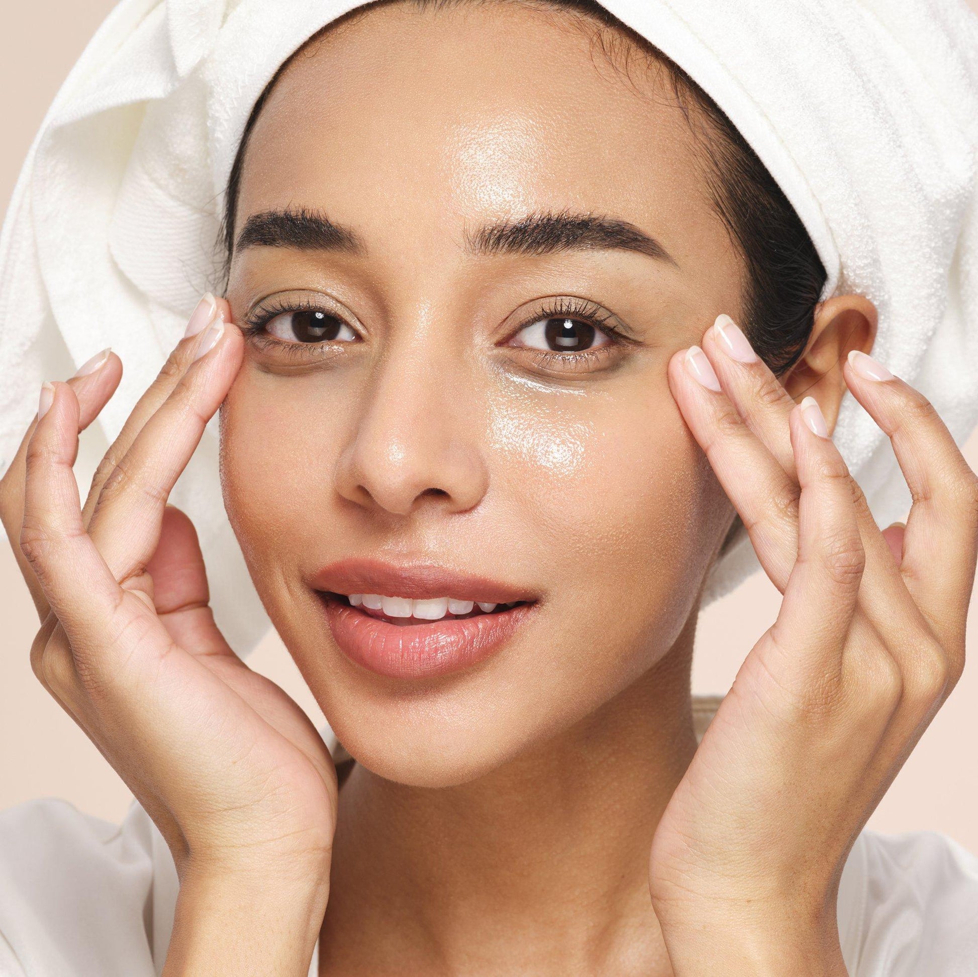- Massage gently over face: forehead, nose, cheeks, and chin, until makeup and oil dissolve.